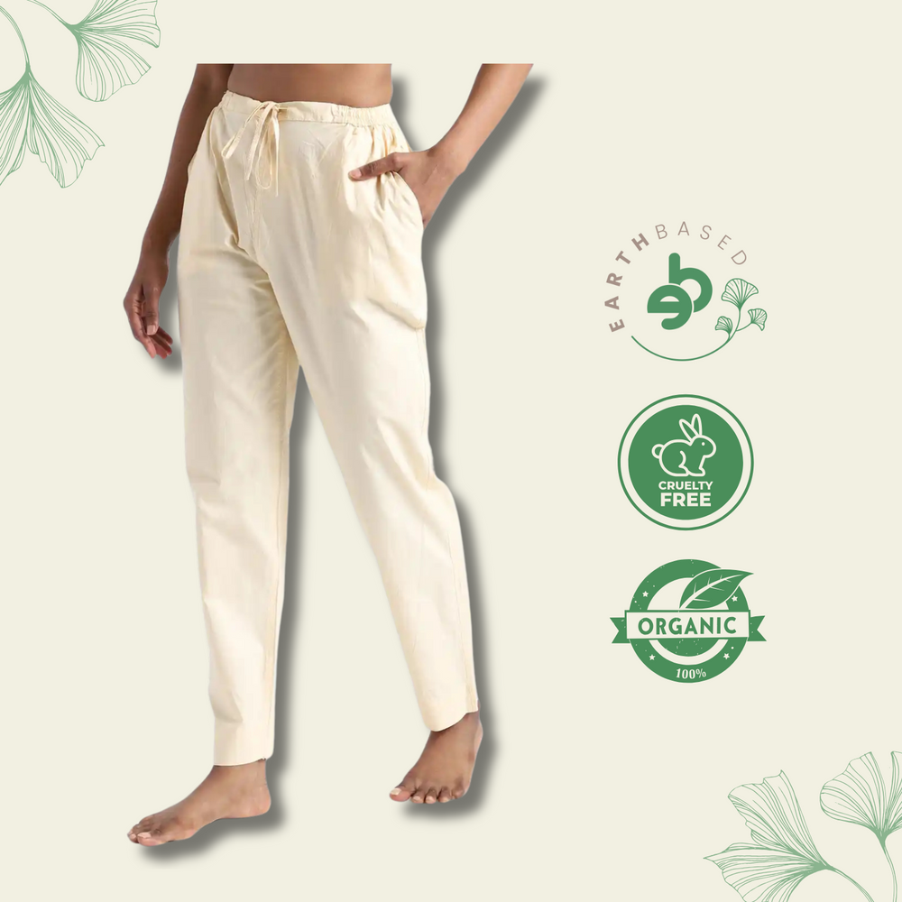 Organic Cotton & Natural Dyed Womens Rust Cream Color Slim Fit Pants by Livbio