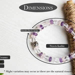 Natural, certified Quartz bracelet with pretty pink and purple beads, neatly woven, with strong elasticated thread for good grip. These powerful beads has classic look which would compliment your personality. This bracelet comes in an attractive jute string pouch which ensures ecofriendly packaging and care, to keep it safe.