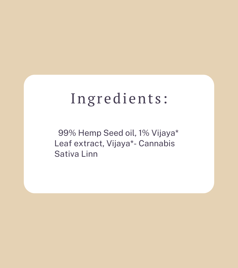 99% Hemp Seed oil, 1% Vijaya* Leaf extract, Vijaya*- Cannabis Sativa Linn