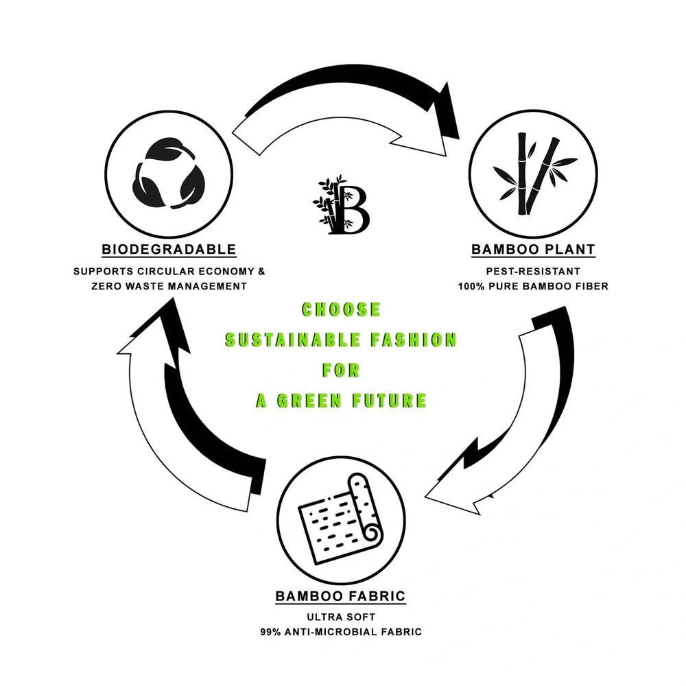 Unlike conventional cotton, bamboo fabric is ethically made and sustainably sourced, using 80% less water and zero pesticides. This premium bamboo material is lab-tested to be 99.9% antibacterial, offering natural protection against sweat, odor, rashes, irritation, and bacterial infections, making it perfect for sensitive skin.