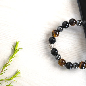 Black Obsidian, Tiger Eye And Hematite Bracelet for Cleansing, Clarity, Strong Mind, Grounding And Better Health