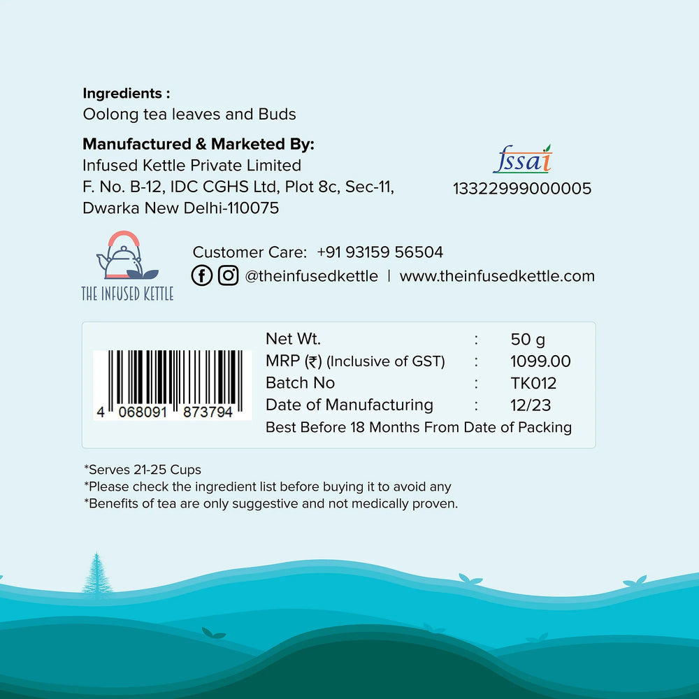 Our Oolong tea is slightly fermented and semi-oxidized, resulting in a distinctive taste that lies perfectly between the richness of black tea and the freshness of green tea. This balanced profile delivers a bold yet nuanced flavor with each sip.