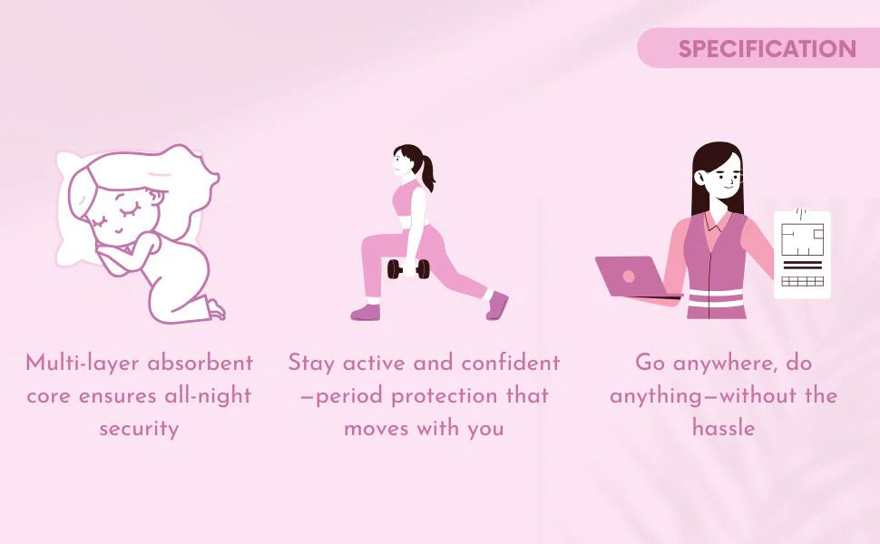 - Protects you from itching & infections, caused by heavy sweating, bleeding or bacterial growth.