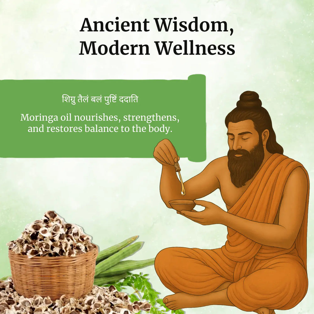 - 100% pure, cold-pressed oil extracted from moringa seeds
