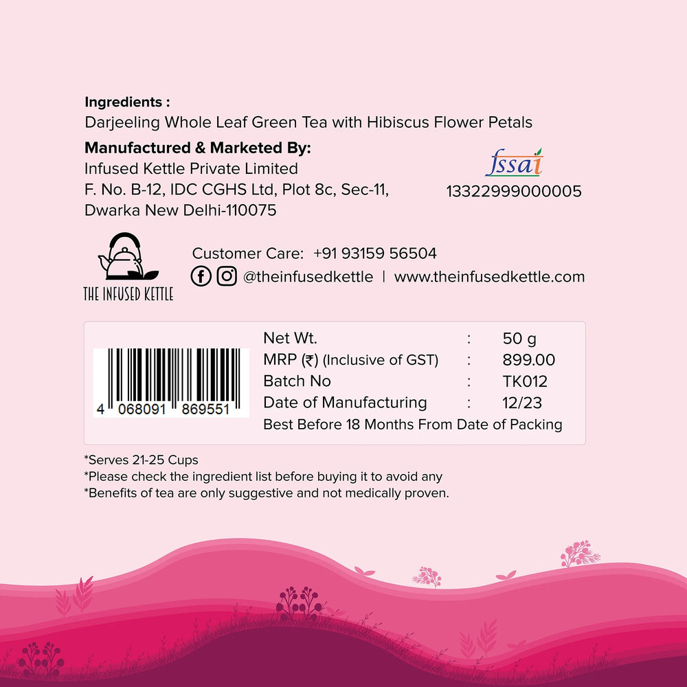 Darjeeling Whole Leaf Green Tea with Hibiscus Flower Petals