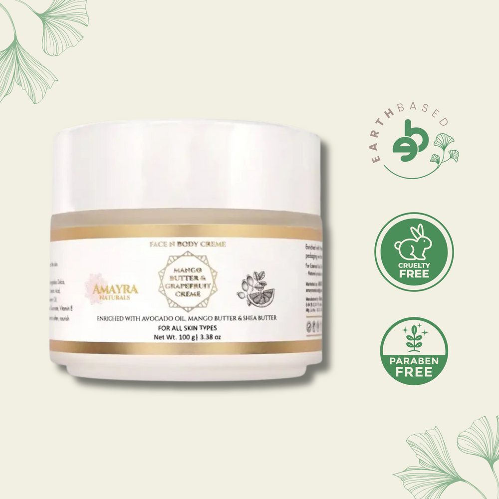 This rich creme is perfectly formulated to deeply nourish and rejuvenate dry to extremely dry skin. It deeply nourishes and repairs the skin to boost its natural elasticity. This Indulgent Face & Body Creme Gives the skin a satin-smooth texture. Enriched with Mango Butter & Grapefruit. this rich moisturizer helps by nourishing dry skin and locking in hydration, making your skin feel soft and healthy with its creamy smooth texture.
