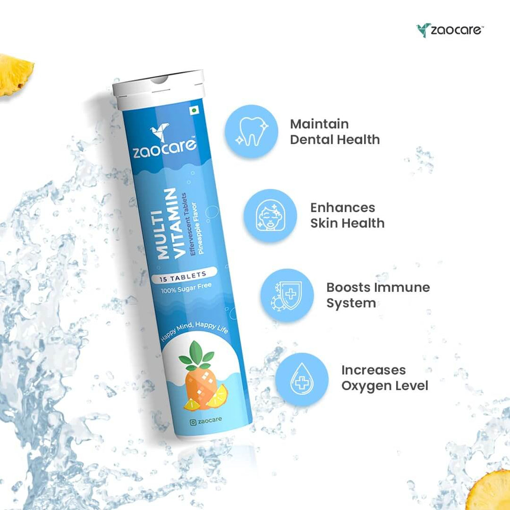 Zaocare Multivitamin Effervescent Tablets For Men & Women | Plant Based Supplements | For Overall Health