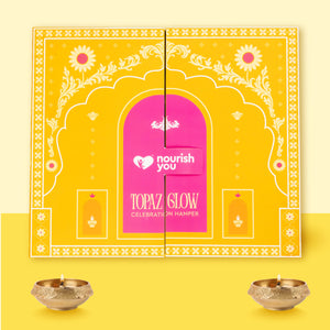 Celebrate the festival of lights with Nourish You’s Shagun Box – Topaz Glow, a premium gifting hamper that beautifully blends health, taste, and festive joy. Thoughtfully curated with nutrient-rich treats, this festive box makes every celebration more meaningful by offering indulgence with wellness.