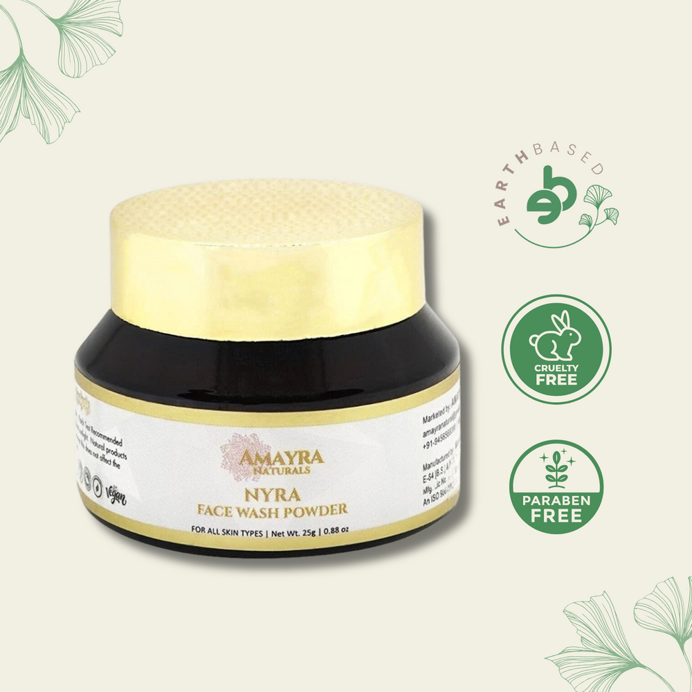 Nyra is an innovative face cleanser powder with powerful cleansing and exfoliating properties inspired by Korean and Japanese Beauty Wisdom. It has been formulated using our Indian Herbs to make it into a 3in1 Formula It’s a beautiful rice starch powder blended with gorgeous plant extracts without stripping the face of its natural oils. Each wash will leave your skin bright, refreshed, and soothed. It is suitable for all skin types, ages, and genders and specially for people with very sensitive skin and are looking for a daily cleanser & gentle exfoliator