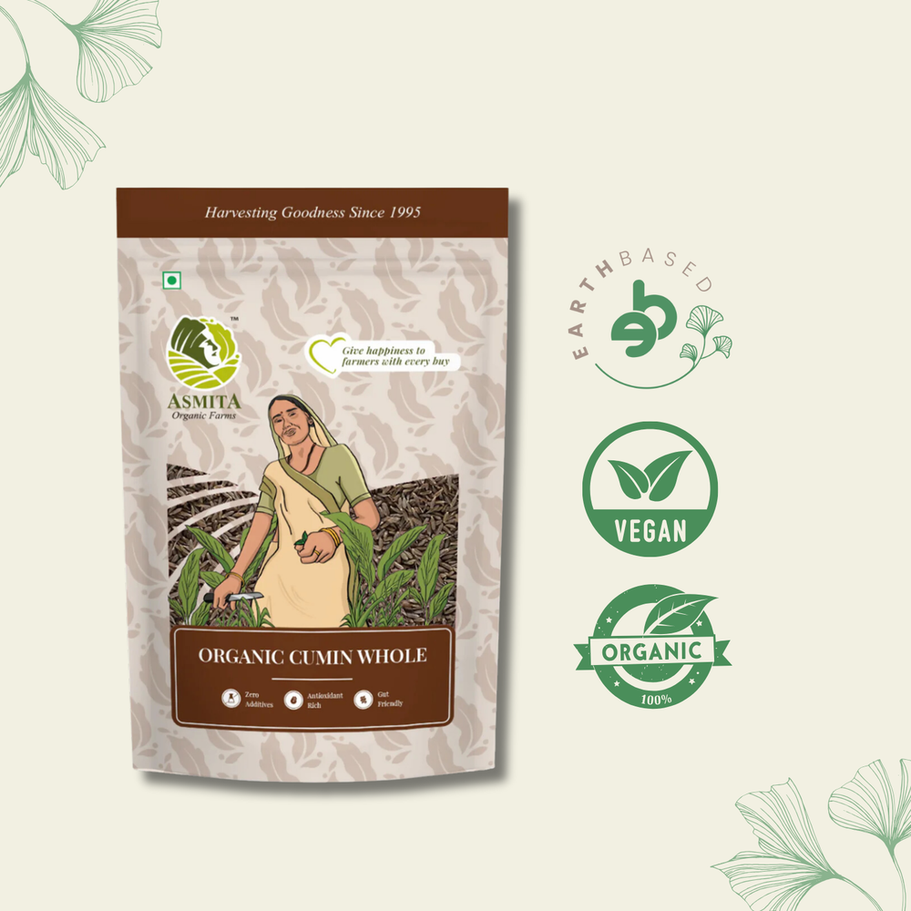 Experience the rich, pure flavour of our organic cumin seeds from Asmita Organic Farms. We grow our cumin with love, using only organic farming practices. This means no synthetic pesticides or chemicals, just natural goodness in every grain.