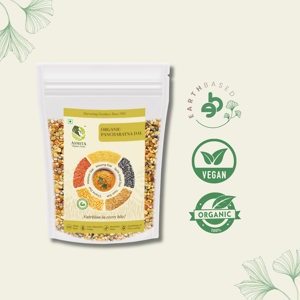 Have a lunch date with your family with protein-packed lentil- Panchratna Dal mix, a healthy blend of five distinct lentils that brings a burst of flavors and textures. This exquisite combination features the high protein content of Arhar dal, an abundance of fiber in Chana dal, Masoor dal's rich iron content, an excellent boost of antioxidants in Moong dal, & magnesium content of Urad dal. Each lentil contributes its own unique benefits that make your meals extra special. Our 100% Organic Panchratna Dal mix not only boasts a delectable flavor profile but also offers a wholesome nutritional experience. Brimming with proteins, fiber, and essential nutrients, this fusion of lentils is a nourishing choice for a well-balanced diet. Whether enjoyed as a comforting mix of dal soup, a hearty stew, or a side dish for rice or chapatis, Panchratna Dal stands to take your dining experience to a whole new level. For the best taste, shop on our website online.