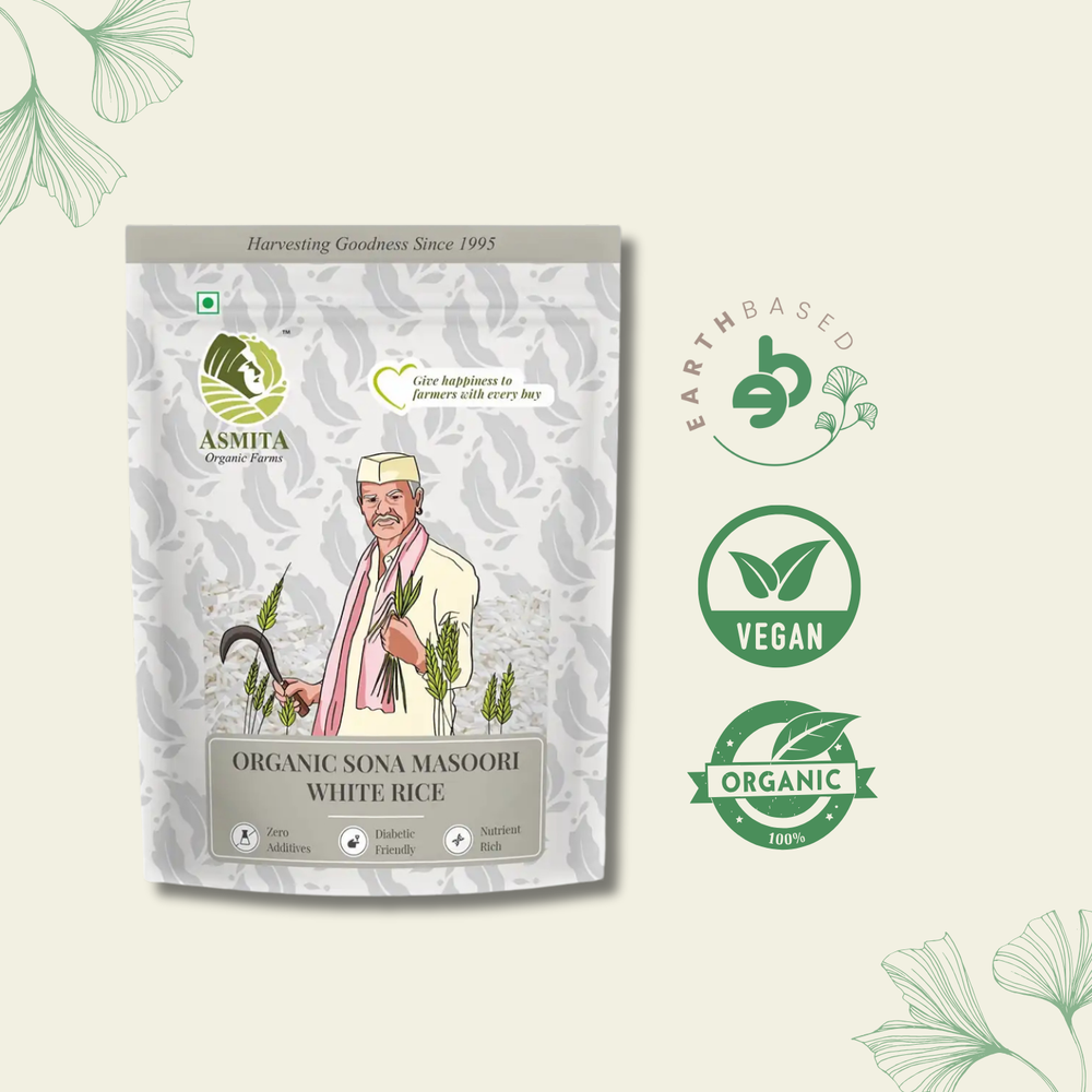 Our Organic Sona Masoori Rice is carefully cultivated in Vidarbha’s organic farms to preserve its natural flavour and quality. Known for its versatility, this white rice is perfect for preparing mouth-watering fried rice, khichdi, kheer, and other grain-based dishes. Grown without chemicals, pesticides, and GMOs, each grain embodies the essence of purity and authenticity. Treat yourself and your family to a wholesome meal that combines taste, texture, aroma, and nutritional value with Asmita Organic Farm’s organic rice.
