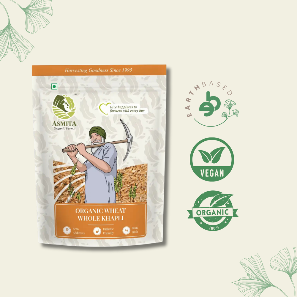 Organic Wheat Whole Khapli (Emmer) - 1Kg | Asmita Organic Farms