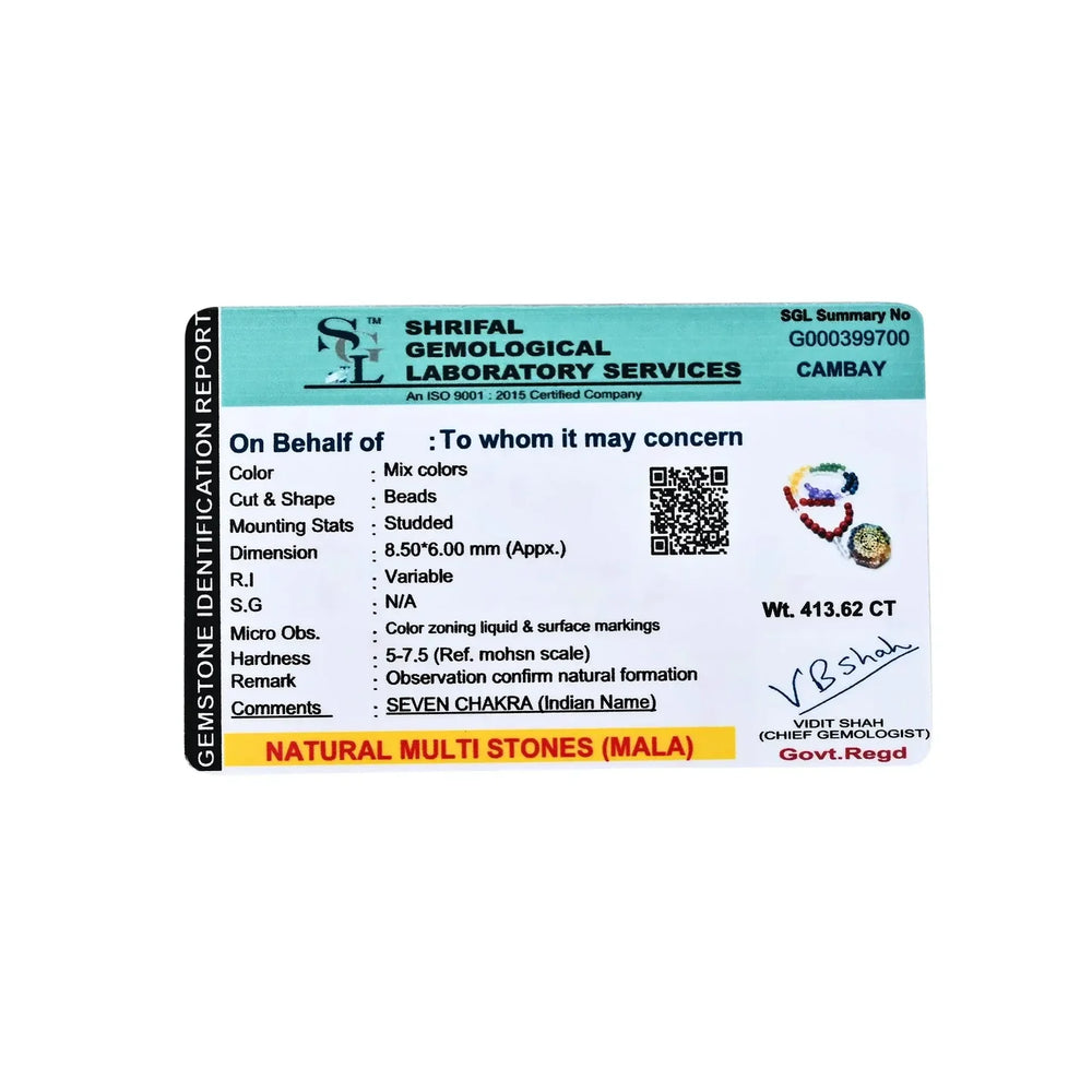 Seven Chakra Healing Crystal Certified Gemstone Mala