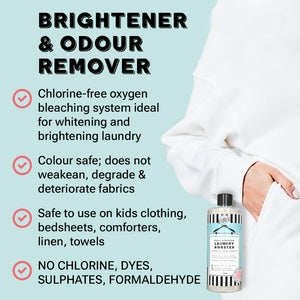 Simply add directly to the washing machine drum while running a cycle to whiten and brighten clothes. "