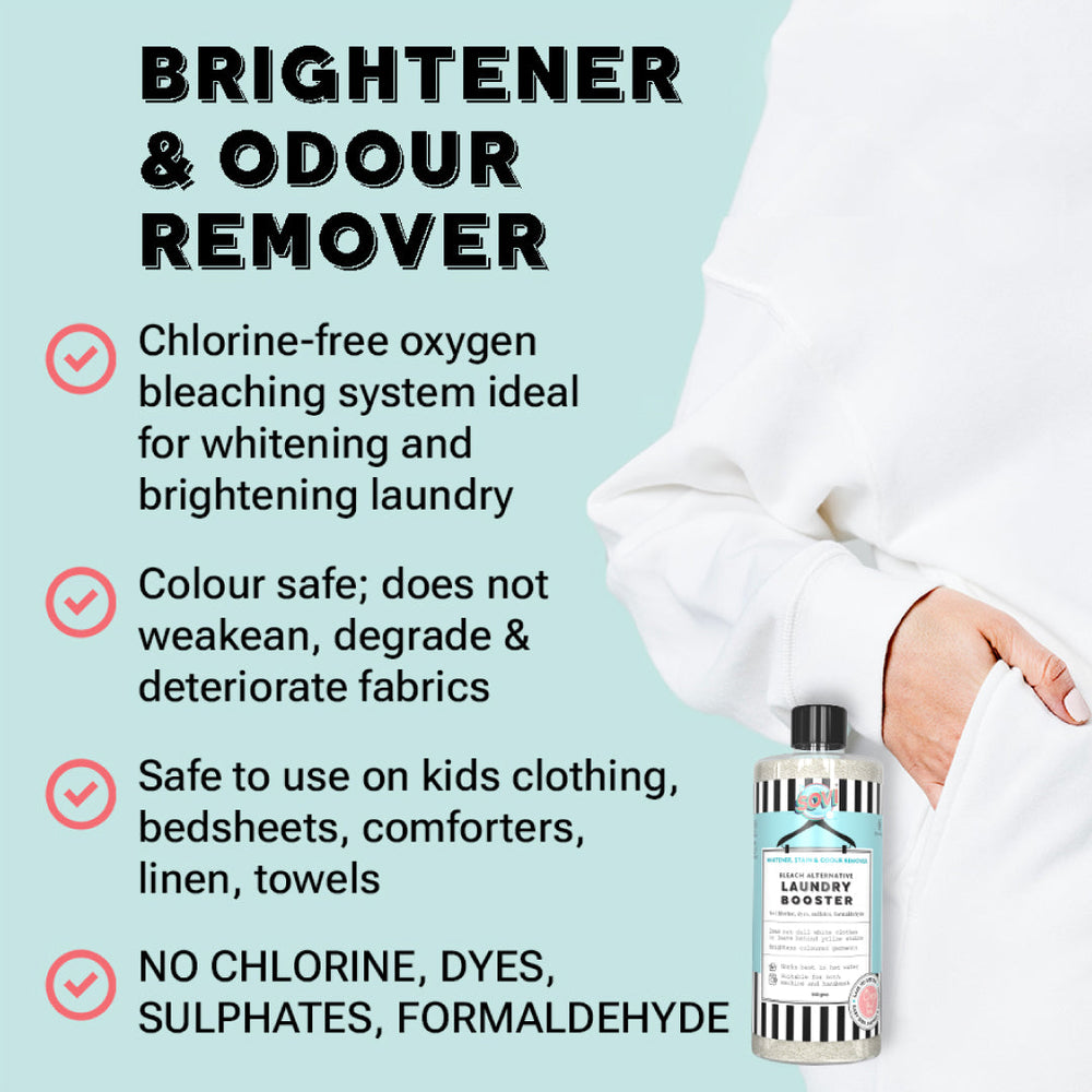 Give your laundry an EXTRA BOOST of clean with our SOVI® Laundry Booster which is fee of harsh chemicals and is a powerful alternative to chlorine bleach.