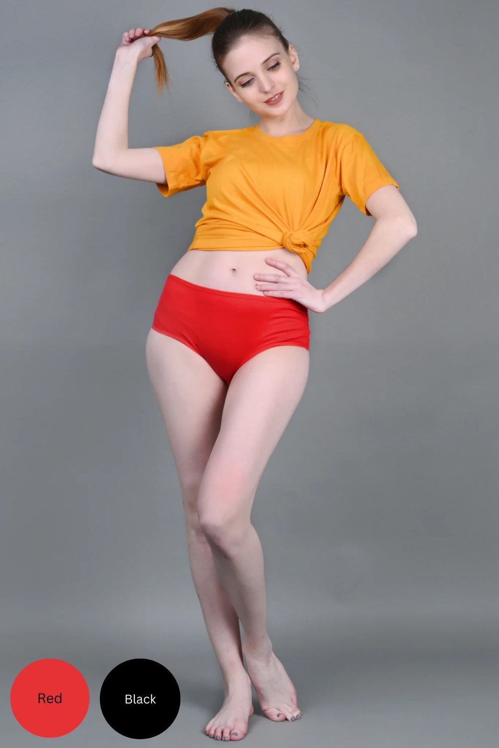 Bamboo Fabric Women's Mid Rise Panty | Red and Black | Pack of 2