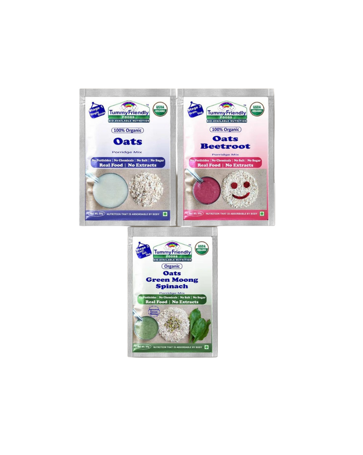 TummyFriendly Foods Certified Oats Porridge Mixes - Stage1, Stage2, Stage3 | Rich in Beta-Glucan, Protein & Fibre|3 Packs, 50g Each Cereal (150 g, Pack of 3)