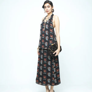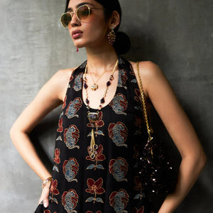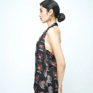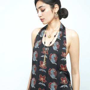 Description: A sleek halter neck top in modal with the Blooming Beast print. Designed with side slits and a side zipper, it’s a bold yet versatile piece that pairs effortlessly with skirts, trousers, or layers.