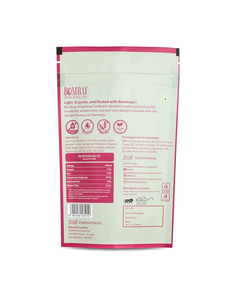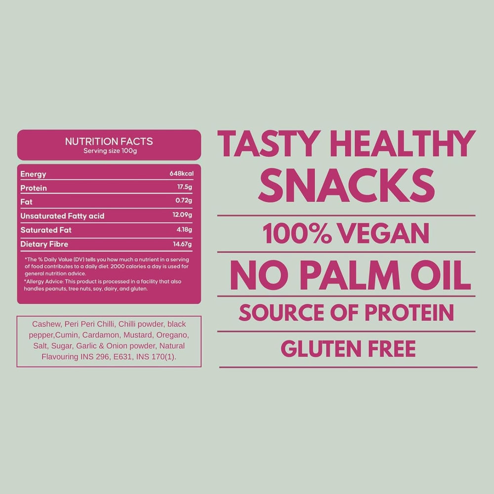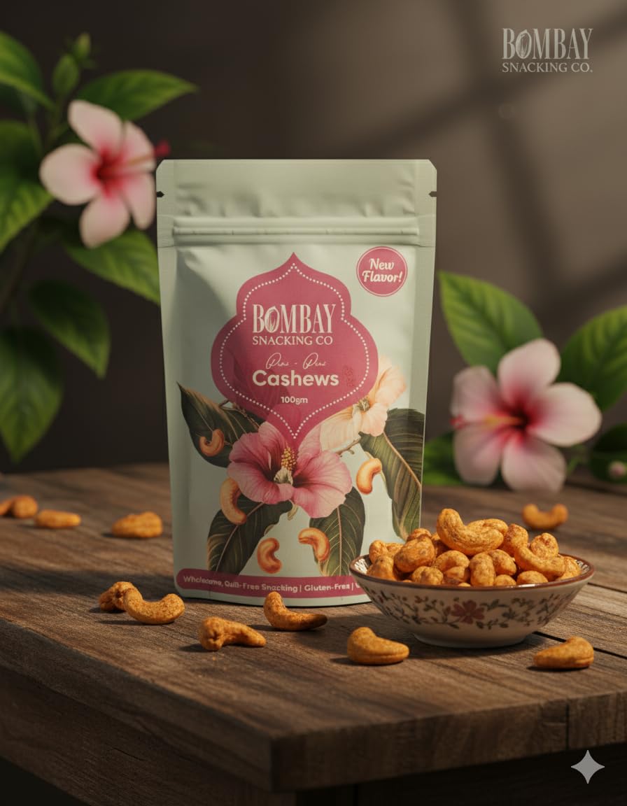 Bombay Snacking Co. Roasted Zesty Peri Peri Cashews (100g) – No-Oil, Protein-Rich Dry Fruit Snack | Bold Spice & Gourmet Crunch
