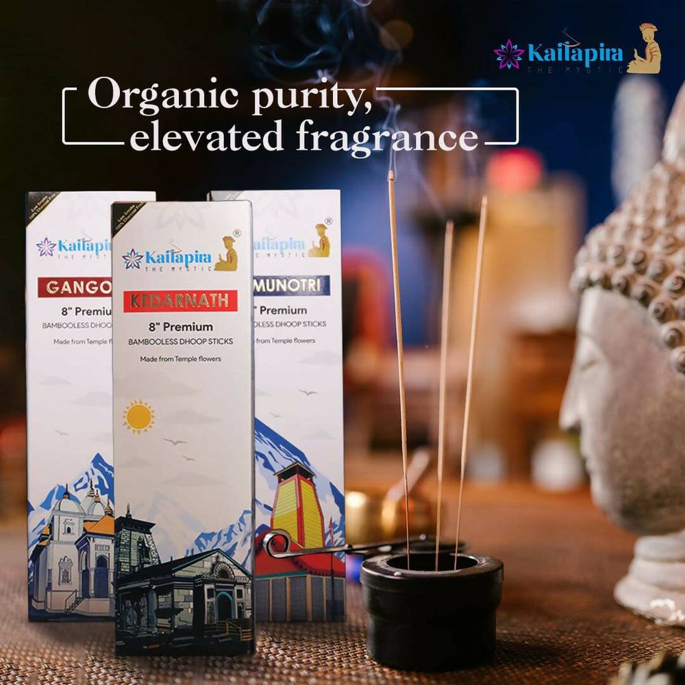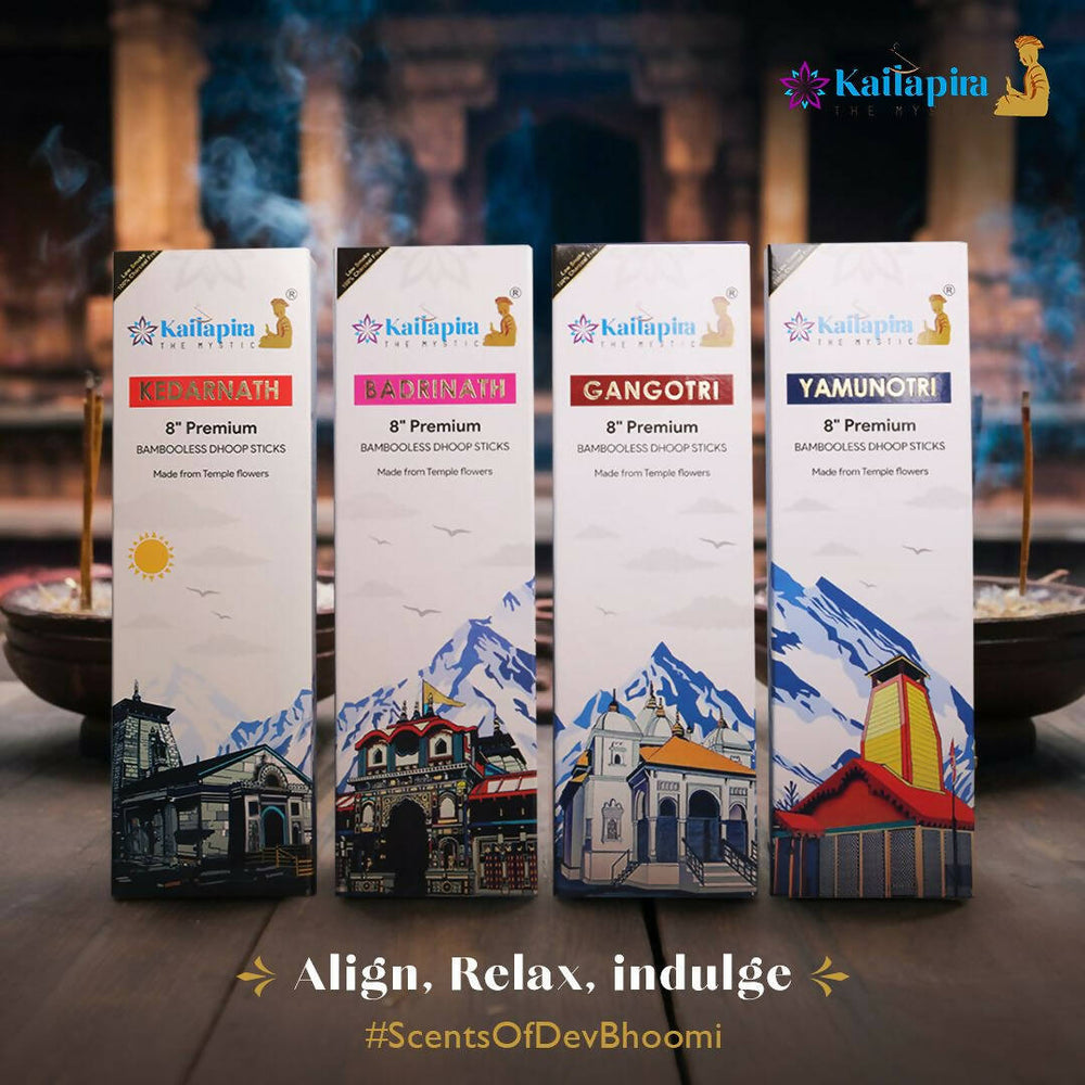 This combo from Kailapira is an assortment of 4 packs of Dhoop batti of fabulous fragrances signifying Chaar Dhaams of India (Kedarnath, Badrinath, Yamunotri, and Gangotri). This pack is designed specially to make you feel light and refreshed after a long tiring day. These incense sticks have been created to awaken self-confidence, communication, and wisdom and for meditational or spiritual purposes. Within a few seconds of burning, these sticks will make the atmosphere luxurious. The most refreshing and cleanest scent can bring positivity and good thoughts.