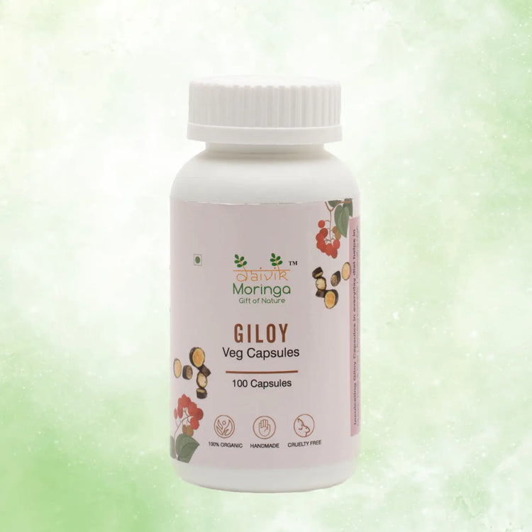 Known in Ayurveda as ‘Amrita’, meaning nectar of life, Giloy (Tinospora Cordifolia) is a time-tested herb revered for its wide-ranging health benefits. Daivik Moringa’s Giloy Veg Capsules harness the pure power of 100% shade-dried Giloy stem to help support your immune system, promote vitality, and fight oxidative stress.