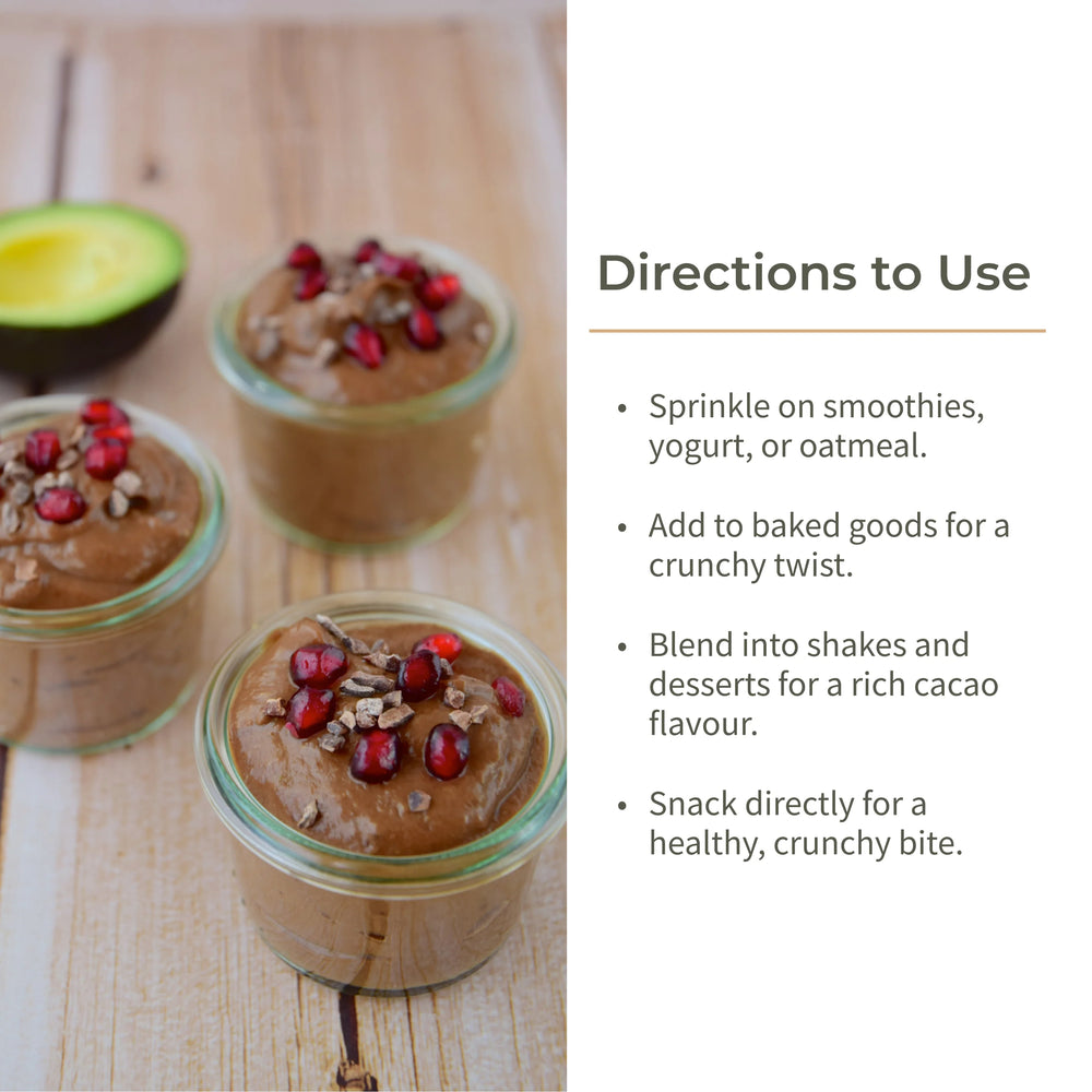 Perfect for smoothies, baking, desserts, or healthy snacking, these cacao nibs bring wholesome indulgence to your everyday routine.
