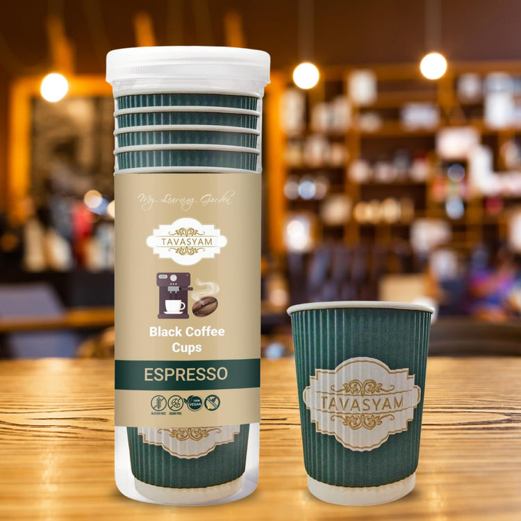 TAVASYAM Black Coffee instant coffee powder | Espresso Flavoured Coffee | Vegan, Gluten Free & Sugar Free | No Additives | No-Drip Infusion Layer | Pre-Filled Coffee Cups 200ml | Pack of 12 Cups