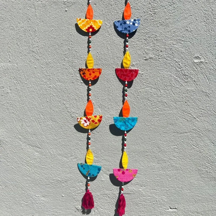 As a beautiful reflection of our customs and traditions, these colorfully festive Wall hangings help you celebrate any special occasion in style. Made of deadstock fabric clippings, newspaper beads, and cotton string, our wall hangings serve great as adornments to corner spaces and brighten walls. This product comes as a set of 2 with each wall hanging measuring 48 inches in length and 3.25 inches in width.