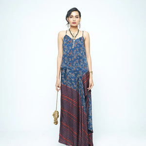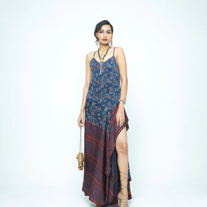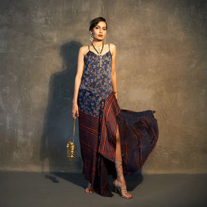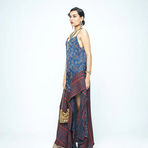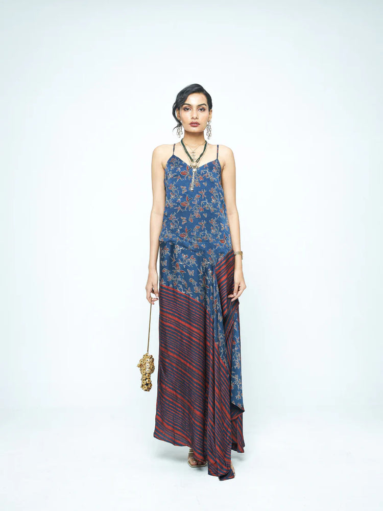 Description: A fluid high–low dress in modal that pairs the Fluttergarden print with an asymmetric Rustic Stripes hem. With thin straps, a V-neckline, and a dramatic short-to-long drape, the Flutter Dress moves beautifully with every step — a graceful choice for both daytime and evening occasions.