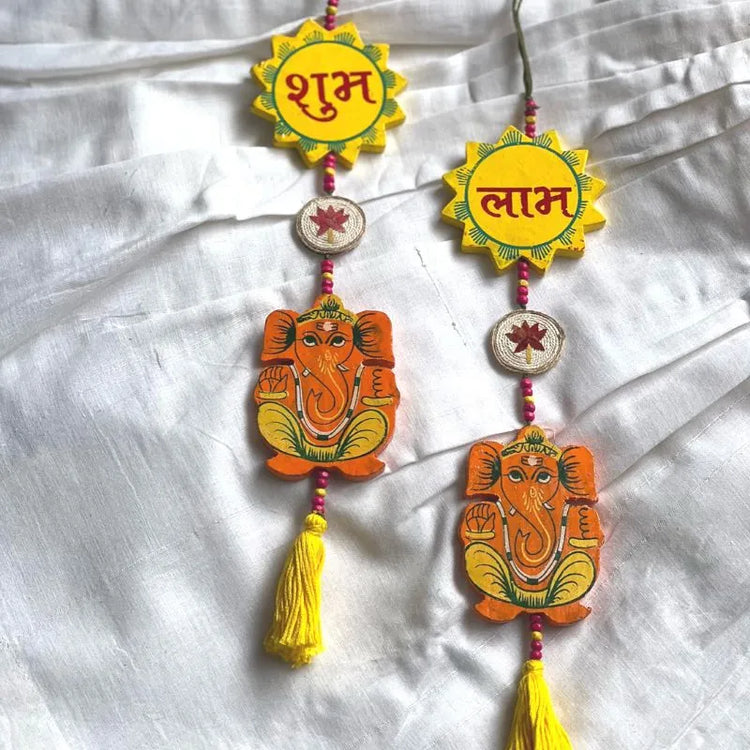 Begin the festivities with an auspicious start with colorful Wall hangings that lets you celebrate any special occasion with ease. Made with handpainted wood, jute and cotton string, our wall hangings serve great as adornments to corner spaces and brighten walls. This product comes as a set of 2 with each wall hanging measuring 14 inches in length and 4 inches in width