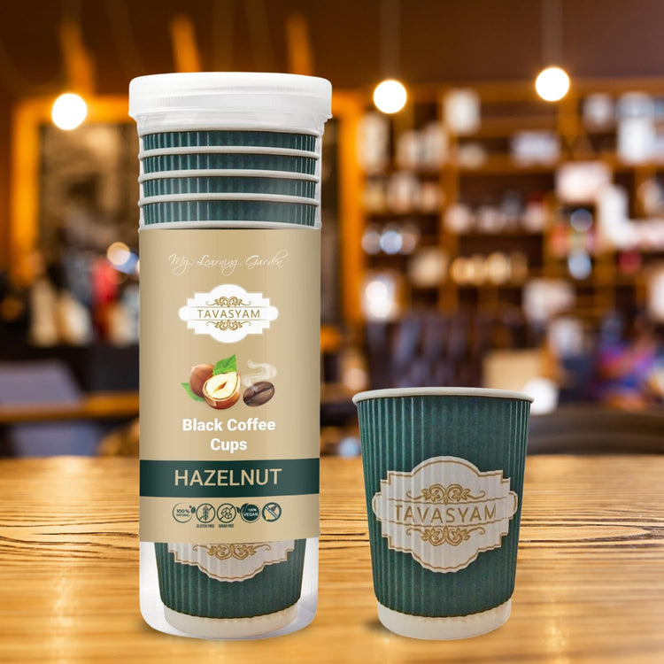 TAVASYAM Black Coffee Hazelnut Instant Coffee Powder | Hazelnut Flavored Coffee | Gluten Free & Sugar Free | No Additives | No-Drip Infusion Layer | Pre-Filled Coffee Cups 200ml | Pack of 12 Cups