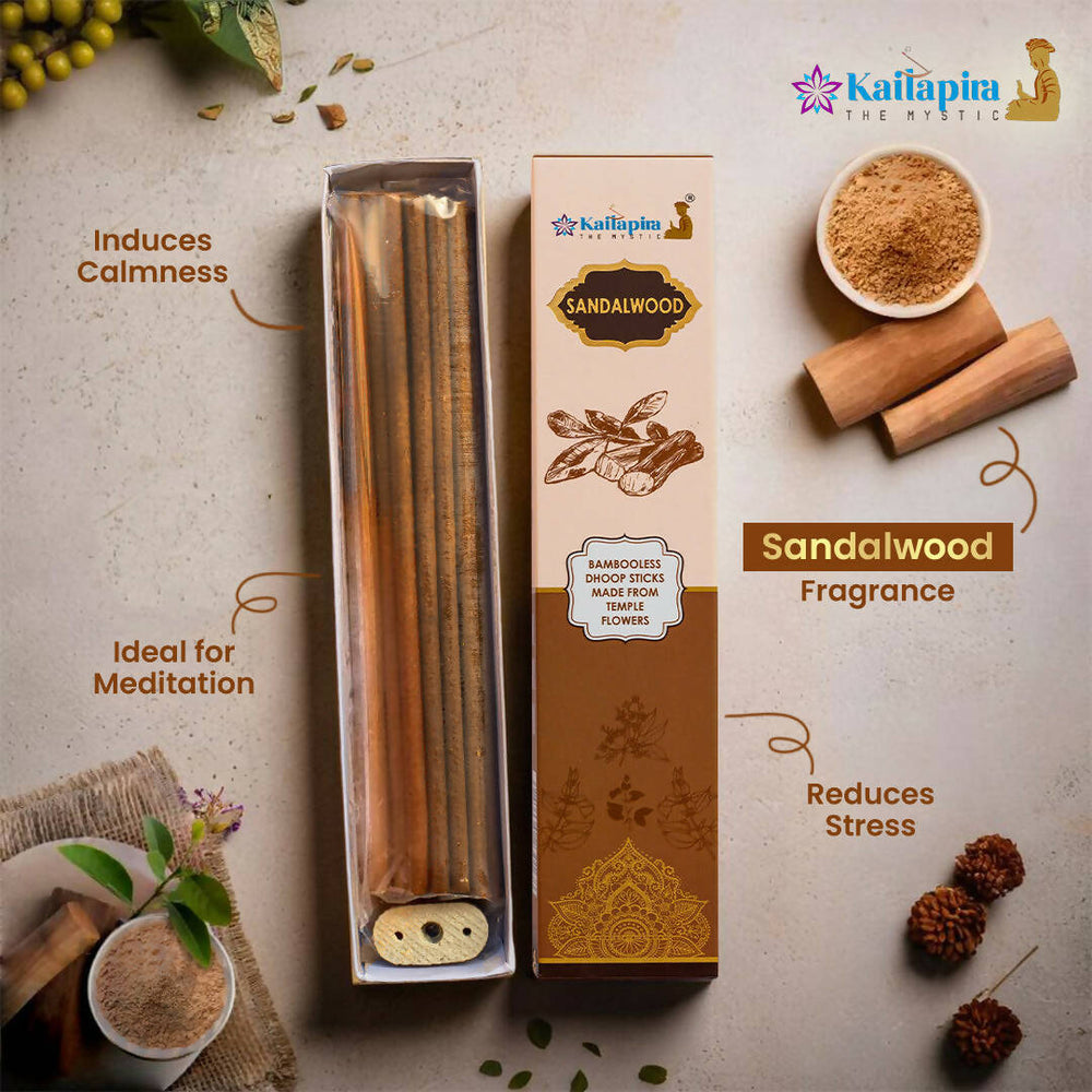 Kailapira Sandalwood Incense sticks – 8” Premium Dhoop Batti, Incense Sticks (Pack of 20) | Pack of 2