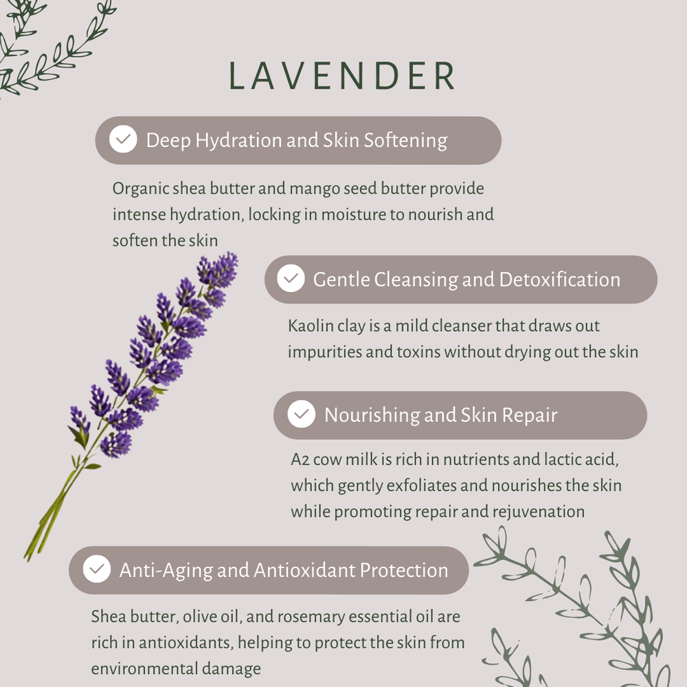 - Anti-Aging and Antioxidant Protection: The antioxidants in extra virgin olive oil, combined with the anti-inflammatory and skin-soothing properties of lavender essential oil, help protect the skin from environmental stressors, reduce the appearance of fine lines and wrinkles, and promote a youthful, radiant complexion.