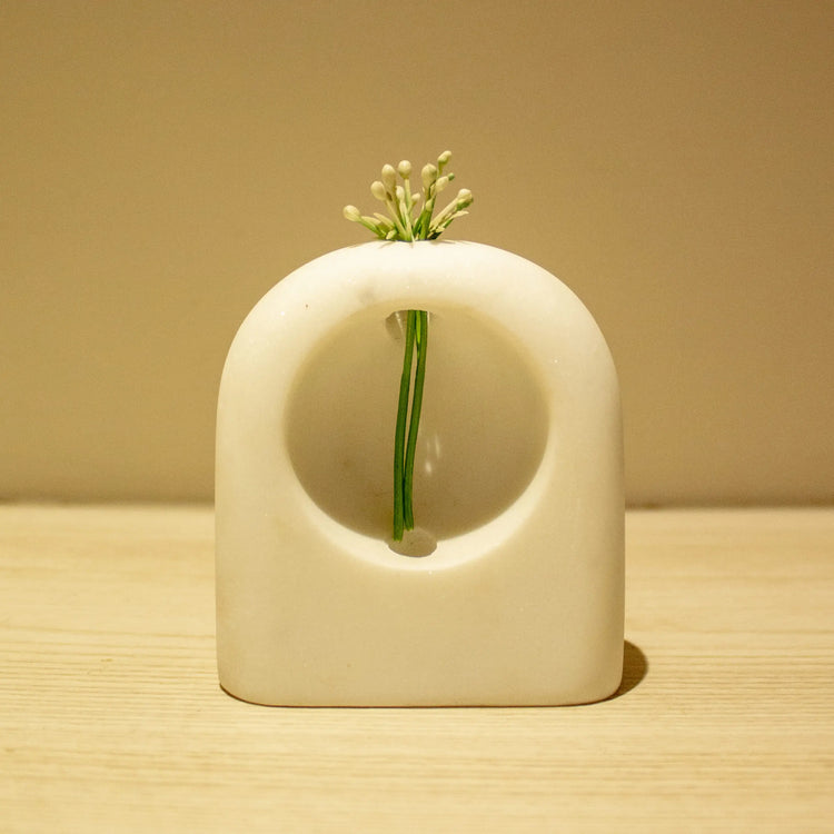 From a workspace to your work-from-home space, a bookshelf to a side table, this elegant delicate piece is a perfect fit to make the space your own. Modern in style, the Naked flower vase is exquisitely hand-cut and carved into refined vases. Each piece is buffed and sanded to reveal the marble’s inherent lustre. This flower pot can be paired with real or artificial scented flowers.