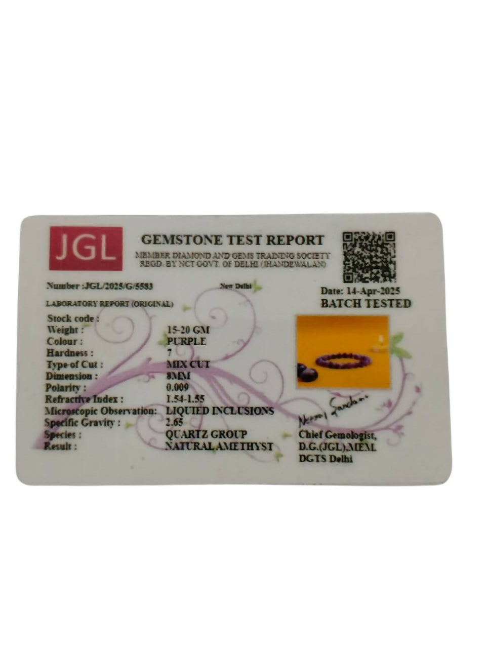 Onearth Certified Amethyst Natural Crystal Bracelet (certified)