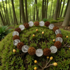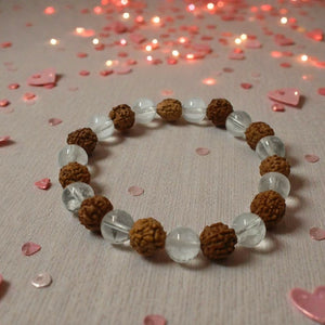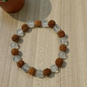 Beautiful and natural quality crystal rudraksha bracelet. This bracelet is made of natural beads of rudraksha along with diamond-cutting-shaped original crystal beads. A combination of Crystal rudraksha beads makes one of the best combinations for good health and calmness, as rudraksha beads are good for health and crystal are cool in temperature so they help us to cool down our temper.