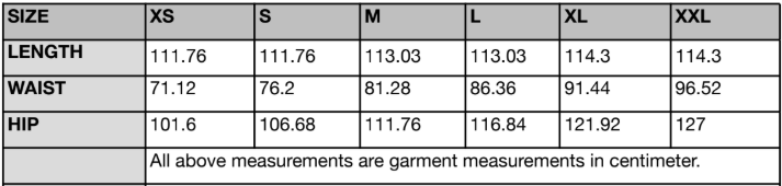- Model is wearing size S, length 46”. Standard pant length is 44”. If you require the length to be shorter or longer kindly get in touch.