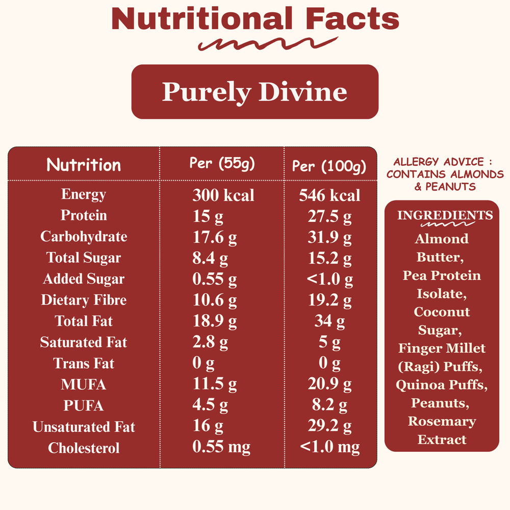 Product Info: Purely Divine is a soft, nutty blend of nutrient-dense ingredients designed to fuel