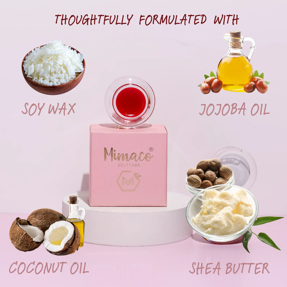 Soy Wax, Shea butter, Coconut Oil, Strawberry Oil, Natural Pigment And Shimmer, Jojoba Oil