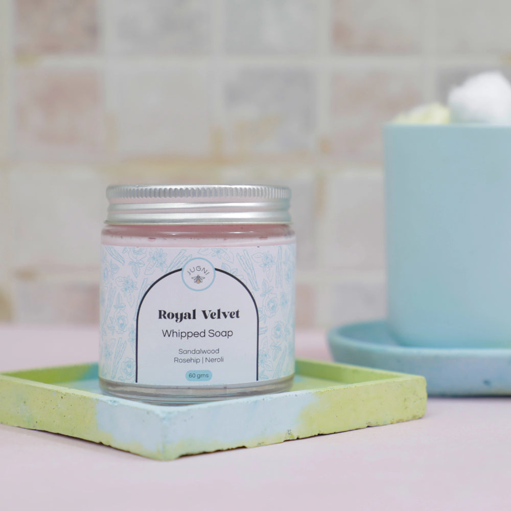 This jar of fluffy, foamy goodness is enriched with almond oil, neroli, sandalwood, and rosehip, making it a luxurious everyday cleansing ritual for all skin types. Royal Velvet gently yet thoroughly cleanses the skin while infusing it with lasting moisture and nourishment. Its dreamy, refreshing aroma transforms bath time into a calming, soothing experience, leaving your skin squeaky clean, deeply moisturised, soft, and super nourished after every wash.