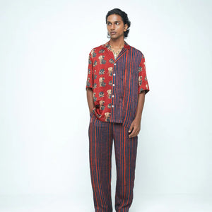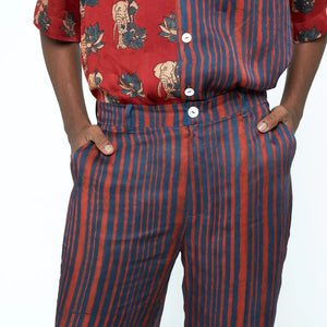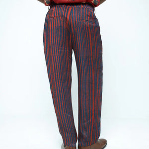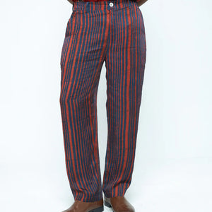 - Description: Full-length trousers featuring the Rustic Stripes print. Designed with a clean waistband and a tapered leg, they offer a sharp yet comfortable silhouette.
