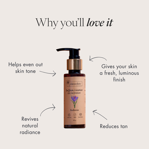 Brighten dull, tired skin with the luxurious goodness of saffron and licorice. This gentle yet effective radiance-boosting facewash helps even out skin tone, reduce tan, and revive your skin’s natural glow.