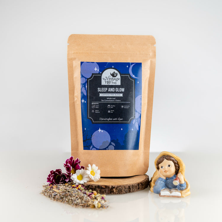 A small batch master blended Tea. Curated to relax your senses and give you good skin loaded with antioxidants and skin vitamins. Flowers and herbs are a vintage way of life. The ideal time to brew is before bedtime or whenever you want to unwind