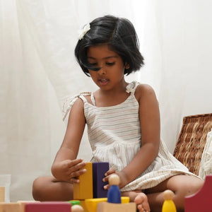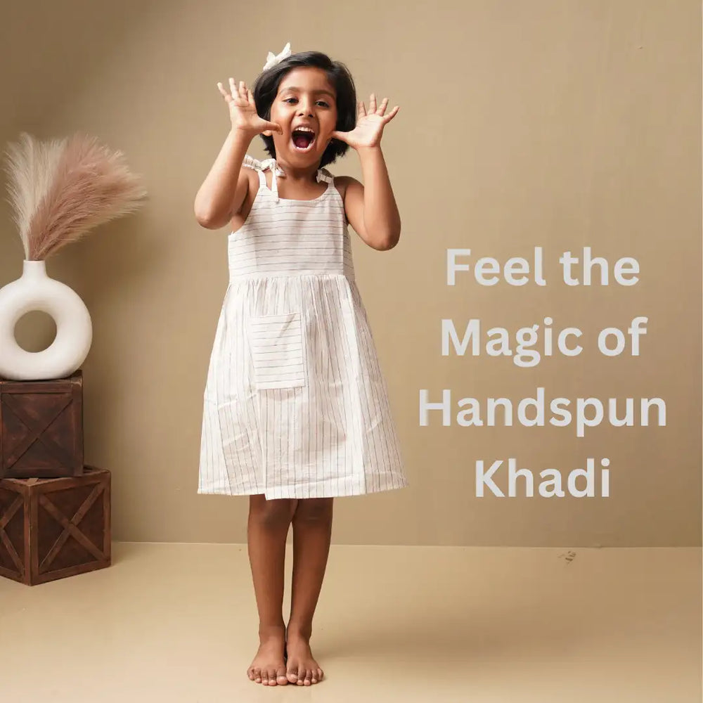 Introducing - Girls Frock made of 100% natural handspun khadi, dyed with azo-free natural dyes. This functional, comfortable, and elegant outfit will embrace your child in natural beauty. Perfect for all occasions, from parties to playdates, this set is crafted with the requirements of the tender skin of your child in mind. The breathable fabric allows for high air flow, making it hypoallergenic and perfect for sensitive skin. The comfort fit is ideal for your little explorers to move freely and comfortably.