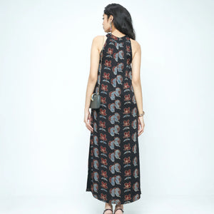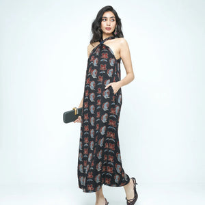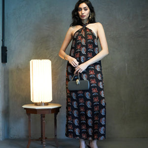 Description: An ankle-length dress in modal featuring the Blooming Beast print. Designed with a front knot detail and a straight flowy fit with side slits, it balances ease and refinement. It is finished with side pockets and a back zipper for comfort.