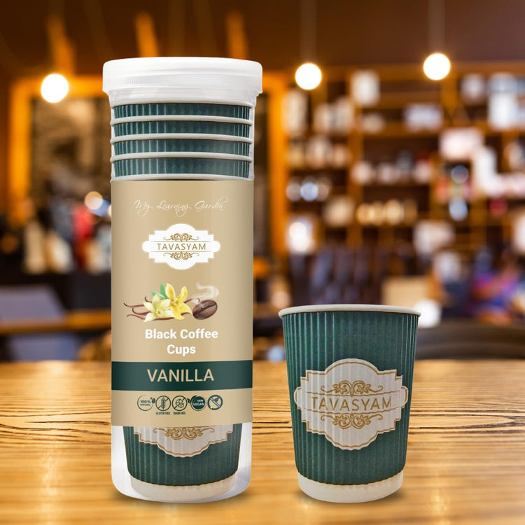 TAVASYAM Vanilla Instant Coffee Powder Black Coffee | Vanilla Flavored Coffee | Vegan, Gluten Free & Sugar Free | No Additives | No-Drip Infusion Layer | Pre-Filled Coffee Cups 200ml | Pack of 12 Cup