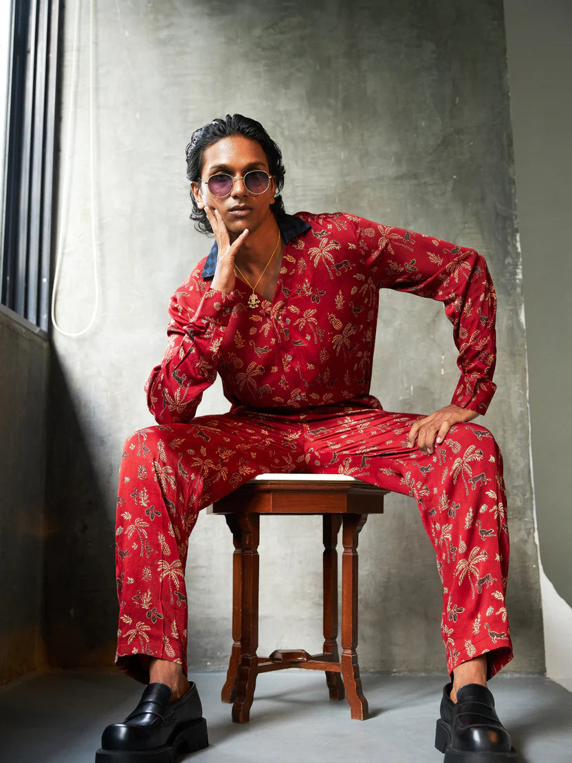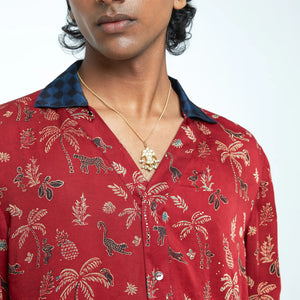 - Description: A relaxed T-shirt–style shirt featuring the Wild Parade print, finished with a checks collar for contrast. Combining the ease of a tee with the structure of a shirt, it delivers effortless style with a bold, contemporary edge — ideal for days that flow into nights.
